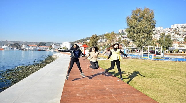 “İzmirdeniz Kıyı Tasarım Projesi” kapsamında, Turan ile Yeni Kent Merkezi arasında uzanan kıyı şeridinin ilk etabında bisikletli mola terasları, engelli çocukların da kullanabileceği oyun alanı, deniz merdivenleri ve sosyal medya meydanı gibi düzenlemeler yapıldı.
