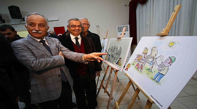 Törende konuşan Bayraklı Belediye Başkanı Hasan Karbağ, “Geçen sene bu sergimizi yaptık. Orada dereceye giren karikatürler vardı. Bu sene fotoğraf yarışmasında dereceye girenlerin objektifinden çıkan fotoğraflar da yer alıyor. İzmir’de karikatür dergisi çıkaran tek belediye biziz. Sanatın her dalına burada destek vermeye çalışıyoruz. Bu salon gibi inşallah daha çok tesisler yapacağız. Postacılar Kültür Merkezi ihalesine çıktık. Oranın hep beraber temelini atacağız. Manavkuyu’da yapacağımız dev kültür ve spor merkezinin temelini yeni yılda atacağız.
