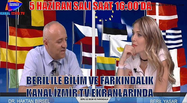 Dokuz Eylül Üniversitesi Öğretim Üyesi Beril Yaşar'ın İzmir'in 24 saat yayın yapan tek televizyon kanalı Kanal İzmir Televizyonunda hazırlayıp sunduğu "Beril ile Bilim ve Farkındalık" programının 5 Haziran Salı günü saat 16:00'da canlı yayın konuğu Katip Çelebi Üniversitesi Uluslararası İlişkiler Bölümü Öğretim Üyesi Dr. Haktan Birsel oluyor.