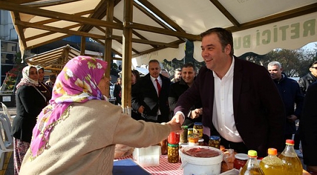 Pazarın stantlarını tek tek gezen Buca Belediye Başkanı Levent Piriştina, tadına bol bol alışverişte yaptı.