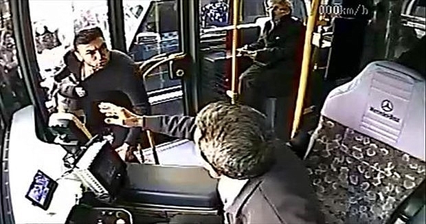 Görüntülerde cama vurup otobüsün kapısını açtıran Yılmaz, şoförün üzerine yürüdüğu tespit edildi. Otobüs şoförü koltuğun altından sopa çıkartırken, araya girenler Yılmaz'ı sakinleştirip otobüsten uzaklaştırdı.