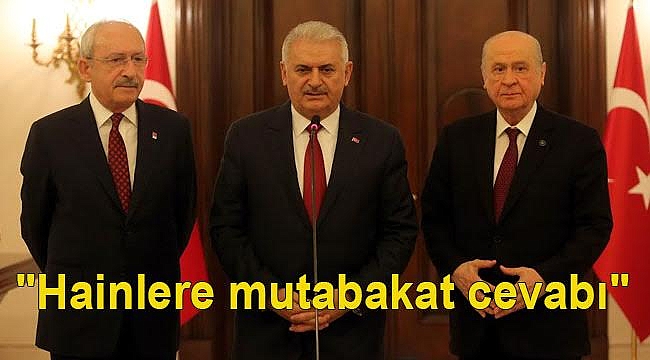 Türkiye'ye yönelik saldırılarını arttıran kanlı terör örgütü PKK'ya yönelik mücadelede tüm ülke ayyıldız bayrak altında tek yürek olurken, aynı zamanda bir ilk yaşandı; 3 lider ortak terörle mücedele konusunda ortak açıklama yaptı. Liderlerin ortak görüşü, terörle mücadeleninin kararlılık ve acımasızca devam etmesi yönünde oldu.