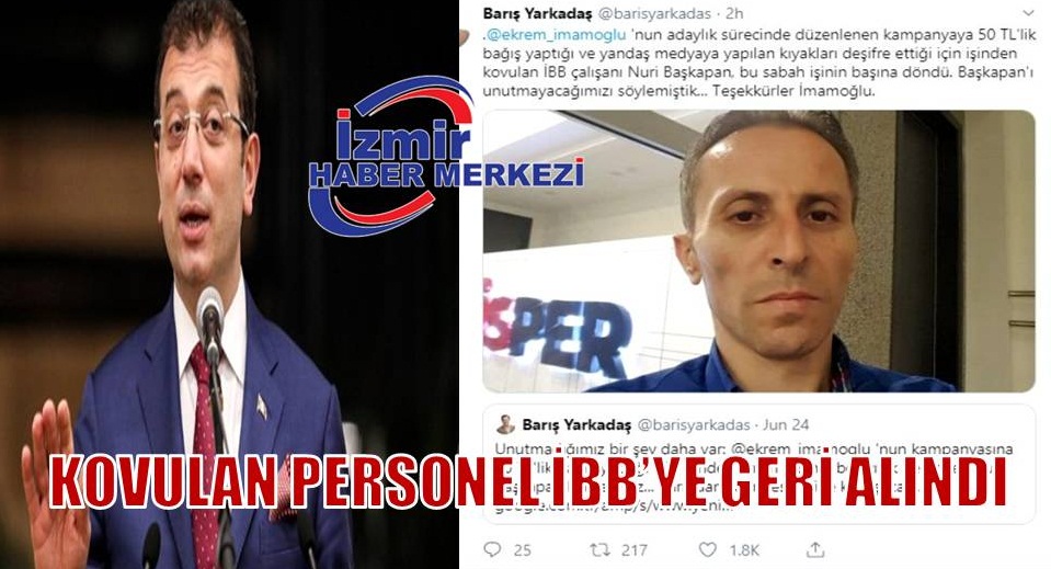 CHP'nin eski İstanbul Milletvekili Barış Yarkadaş, Başkapan'ın işe döndüğünü söyleyerek, "Ekrem İmamoglu'nun adaylık sürecinde düzenlenen kampanyaya 50 TL'lik bağış yaptığı ve yandaş medyaya yapılan kıyakları deşifre ettiği için işinden kovulan İBB çalışanı Nuri Başkapan, bu sabah işinin başına döndü. Başkapan'ı unutmayacağımızı söylemiştik… Teşekkürler İmamoğlu" dedi. İBB Başkanı Ekrem İmamoğlu'nun adaylık sürecinde başlattığı kampanyada, İmamoğlu'na 50 TL'lik bağış yapmasının ardından İBB tarafından 31 Mayıs tarihinde sözleşmesi feshedilen, Ağaç ve Peyzaj AŞ personeli Başkapan işine geri döndü.