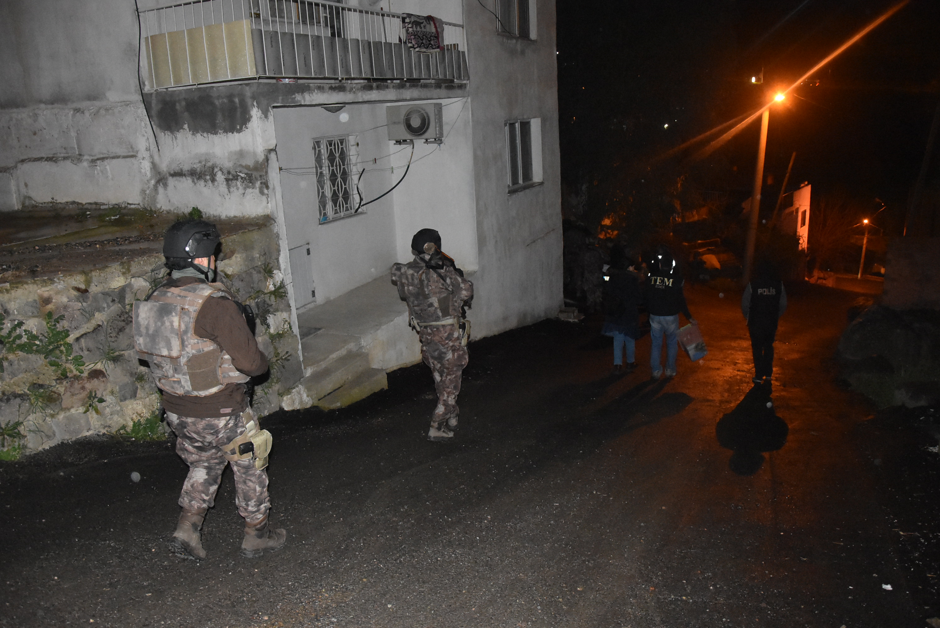Terörle Mücadele, Asayiş Şube, Narkotik Suçlarla Mücadele ve Özel Hareket Şube Müdürlüğünden sorumlu 4 il emniyet müdür yardımcısı koordinesinde, Asayiş Şube Müdürü Seda Okur, Terörle Mücadele Şube Müdürü Akın Tan, Narkotik Suçlarla Mücadele Şube Müdürü Kaan Coşkun'un idaresinde düzenlenen operasyonda, şüphelilerin adresleri tek tek arandı.