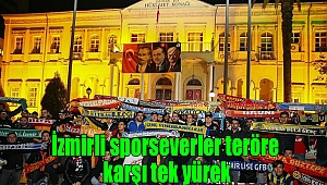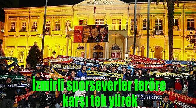 Ellerinde Türk bayrağı, takım atkıları, meşale ve dövizler bulunan taraftarlar, "Şehitler ölmez vatan bölünmez", "Teröre karşı omuz omuza", "Ne mutlu Türk'üm diyene" sloganları atarak İzmir Valiliğine kadar yürüdü. Taraftarlar, burada nöbet tutan çevik kuvvet polislerine başsağlığı dileyerek, çiçek verdi ve tatlı ikramında bulundu. Nöbetteki polislerle fotoğraf çektiren grup, terör aleyhine slogan attı.