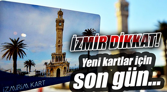 İzmir'de toplu ulaşımda kullanılan Kentkart'ın kullanım süresi 31 Aralık'ta dolacak. Satış gişeleri ve bayilerde satılan İzmirim kartların sayısı 1.5 milyonu aştı. ESHOT 9 Aralık'ta 500 bin yeni kart alımı için de ihale yaptı. İçinde para bulunan eski kartlarını 31 Aralık'a kadar kullanabilecek İzmirliler, 1 Ocak'tan itibaren yeni kartları ile yolculuk yapabilecek. ESHOT Genel Müdürlüğü eski kartları 30 Kasım'da doluma kapatmıştı. Kişiselleştirilmiş öğrenci ve öğretmen kartlarının değişimi eylül ve ekim aylarında gerçekleştirilmişti.