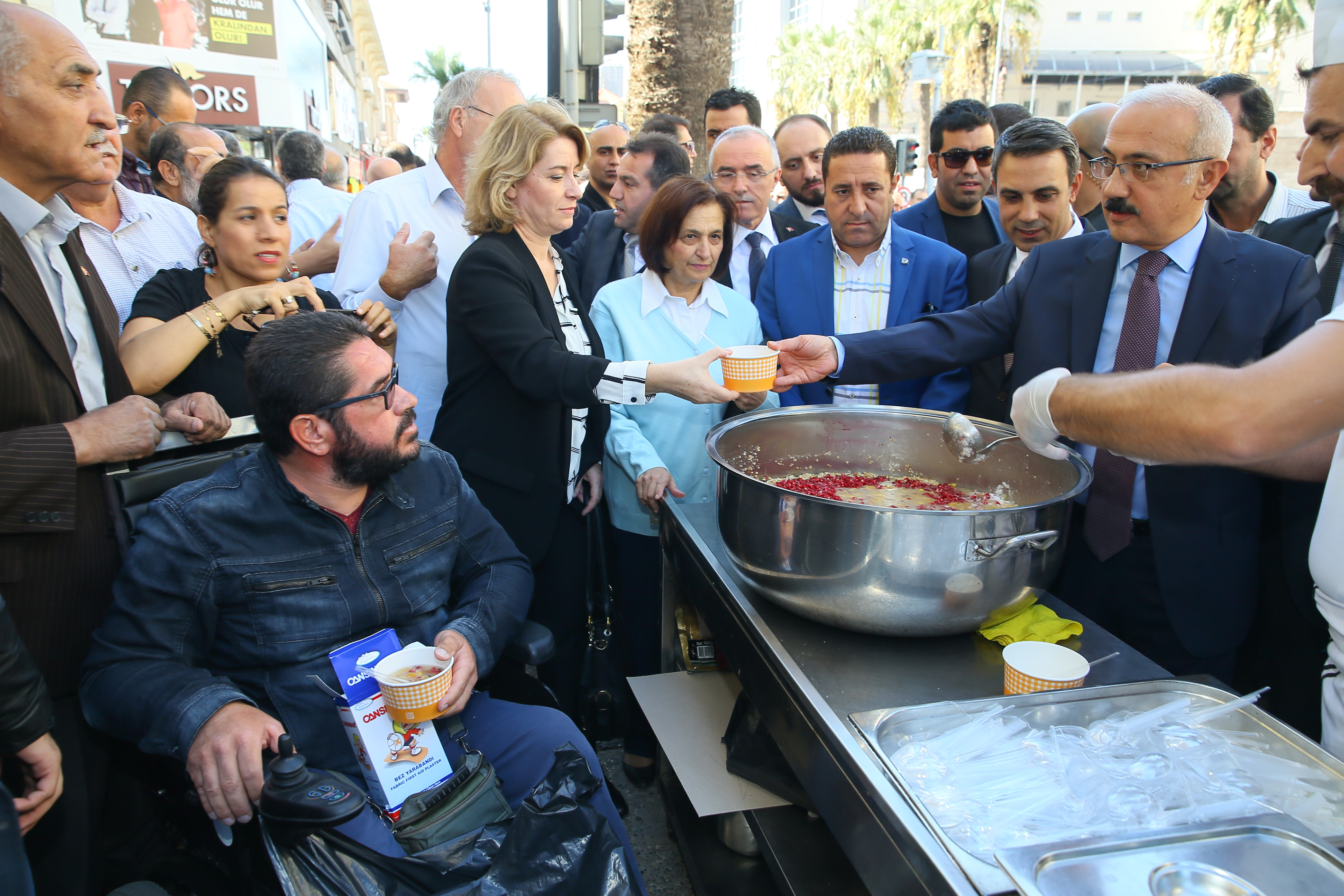 Kendisine ikram edilen döner ve meyveyi yiyen Elvan, daha sonra aşure dağıttı.
