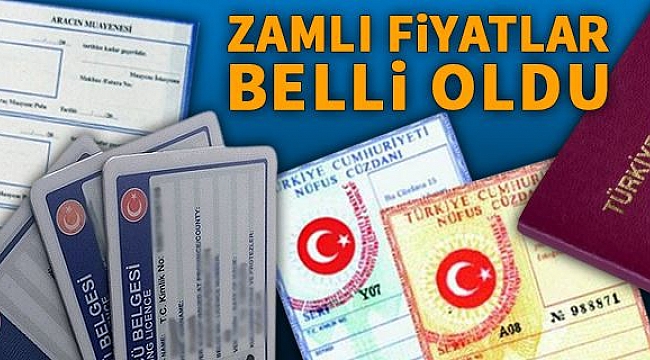 Nüfus cüzdanları 16 lira, aile cüzdanları 86 lira, sürücü belgeleri, sürücü çalışma belgeleri (karneleri) ve motorlu araç trafik belgesi 117 lira, motorlu araç tescil belgesi 88 lira, iş makinesi tescil belgesi 85 lira, her bir çek yaprağı için banka çekleri 5,60 lira, Mavi Kart ise 8,50 liradan satılacak.