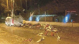 Koçarlı Belediyesi'nin geçtiğimiz pazar günü düzenlediği 4. Deve Güreşi Festivali'nde direklere asılan Türk Bayrakları yerde bulundu.