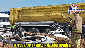 TEM Otoyolu Edirne istikametinde hafriyat yüklü kamyon otomobilin üzerine devrildi. Otomobil sürücüsü yaralanırken, Edirne istikametinde trafik yoğunluğu oluştu.