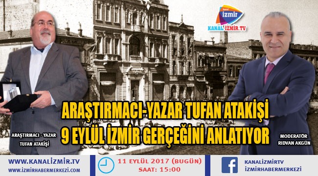 Kanal İzmir TV Gündem Özel Rıdvan Akgün'ün canlı yayın konuğu Araştırmacı-Yazar Tufan Atakişi olacak. 11 Eylül 2017 saat 15:00'de gerçekleşecek yayında 9 Eylül İzmir gerçeği anlatılacak.