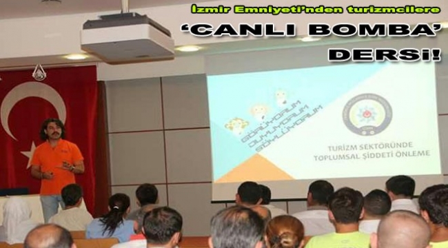 İzmir İl Kültür ve Turizm Müdürlüğü memurlarına, rehberlere, otel, kafe ve restoran çalışanlarına yönelik eğitimde, terör olaylarının gerçekleşebileceği noktalar, şüpheli bir paketin nasıl anlaşılacağı, olağanüstü bir durumda yapılması gerekenlere ilişkin bilgiler verildi. "Görüyorum, duyuyorum, söylüyorum" isimli kılavuz hazırlayan müdürlük, canlı bombaların en belirgin özelliklerini 7 madde ile turizmcilere anlattı.