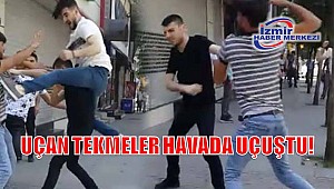Tekme ve yumrukların havada uçuştuğu kavga cep telefonu kamerasına saniye saniye yansıdı. Görüntülerde 2 grubun birbirine tekme ve yumruklarla saldırdığı görülüyor.
