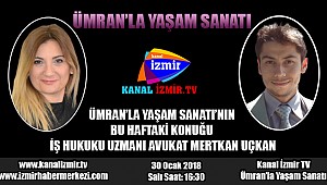 Her hafta birbirinden renkli konu ve birbirinden farklı konukların yer aldığı Ümran'la Yaşam Sanatı'nın bu haftaki konuğu İş Hukuku Uzmanı Avukat Mertkan Uçkan. Dokuz Eylül Üniversitesi Öğretim Görevlisi Ümran Temelkuran'ın hazırlayıp sunduğu Ümran'la Yaşam Sanatı, 30 Ocak Salı (yarın), 16:30'da Kanal İzmir TV ve İzmir Haber Merkezi ortak yayınıyla ekranlarınızda.